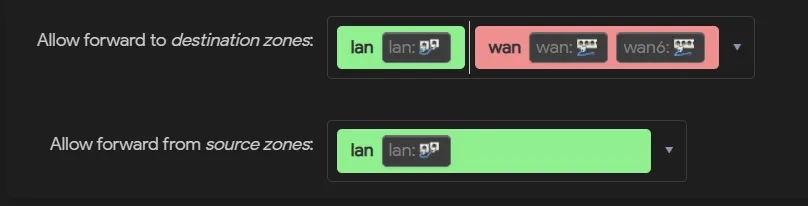 然后就是需要配置一下OpenWrt的防火墙策略(我这里的GUI是luci)